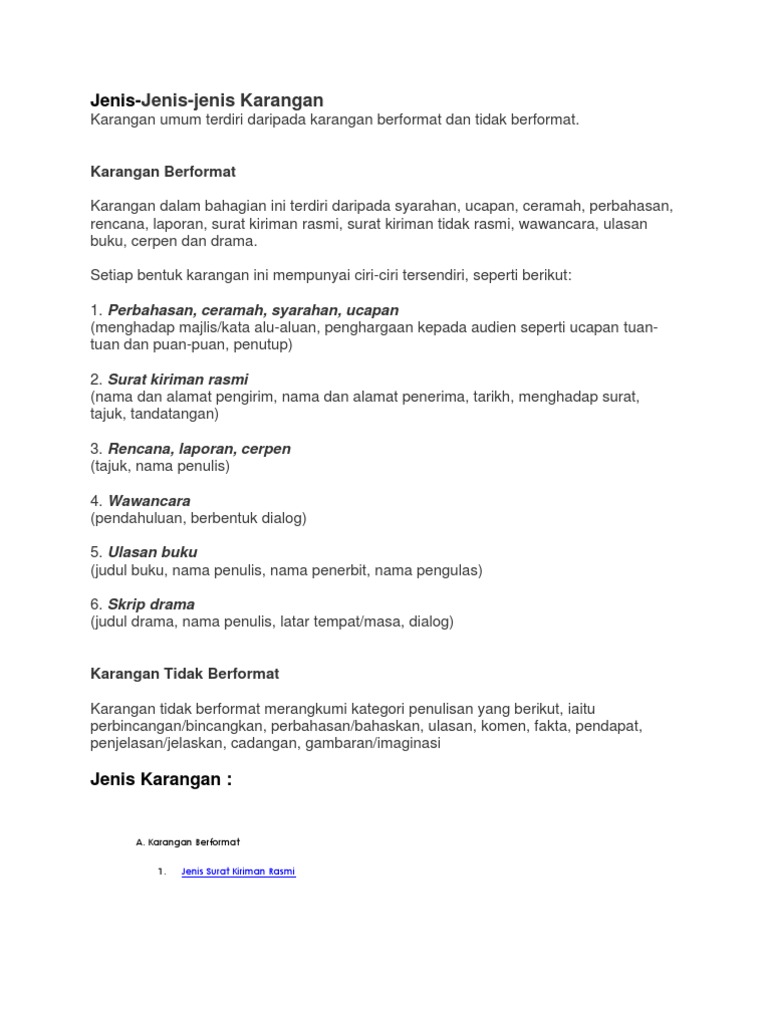 Karangan jenis ini memerlukan anda mempunyai pengetahuan yang penelitian dan pemahaman luas dalam pelbagai bidang seperti terhadap tajuk agar isi yang ekonomi sejarah kebudayaan sains dibincangkan tidak terpesong. Penggunaan pelbagai jenis ayat yang gramatis. Saya akan tanyakan soal itu.